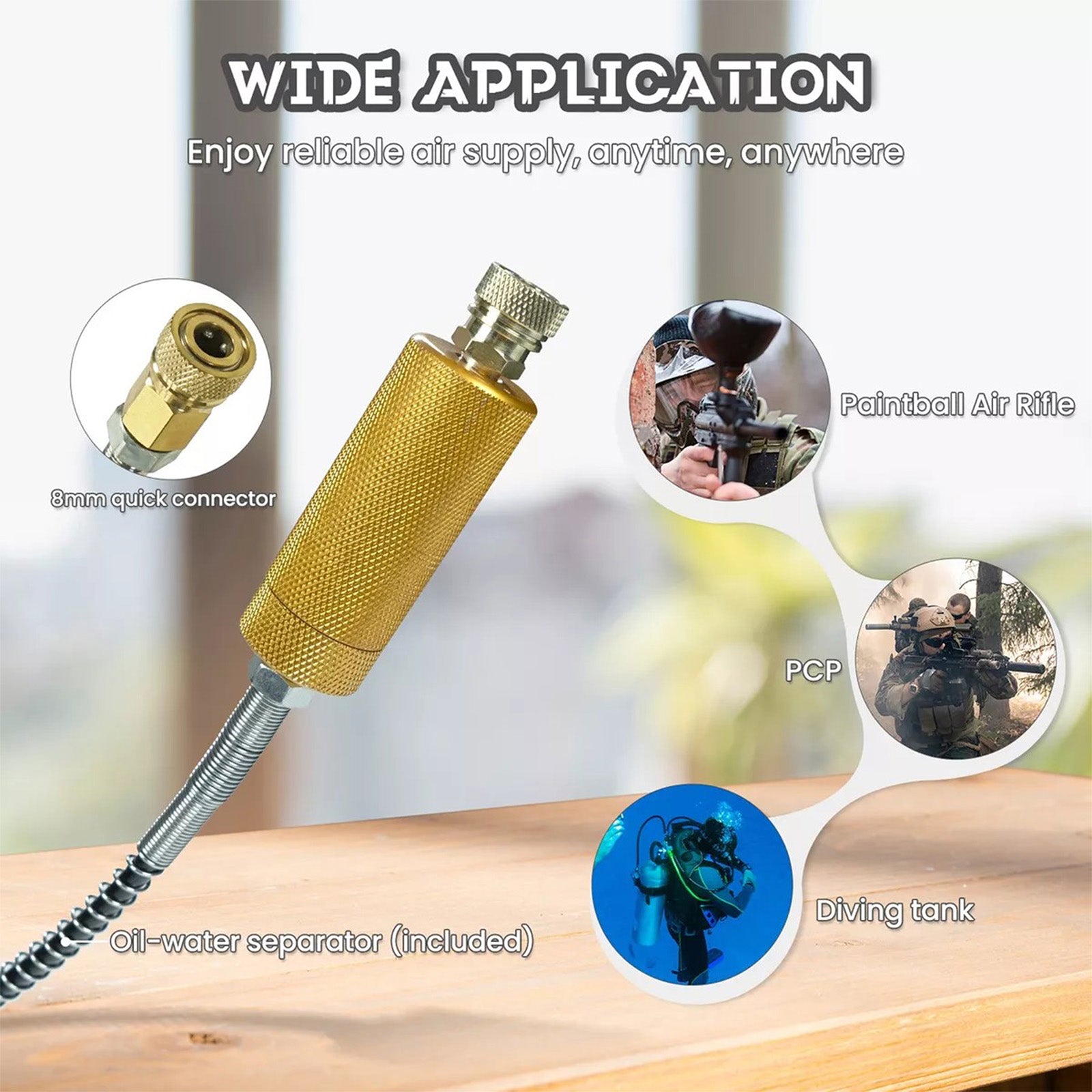 - 【Wide Application】: Our compressor provides 8mm quick-connect high-pressure hose and a set of accessories package for easy connection and replacement. The scuba compressor is very suitable for scuba diving, firefighting, paintball shooting, pressure testing, etc. We come with an operation manual, and if you have any questions, our service team is always ready to answer any of your questions.
