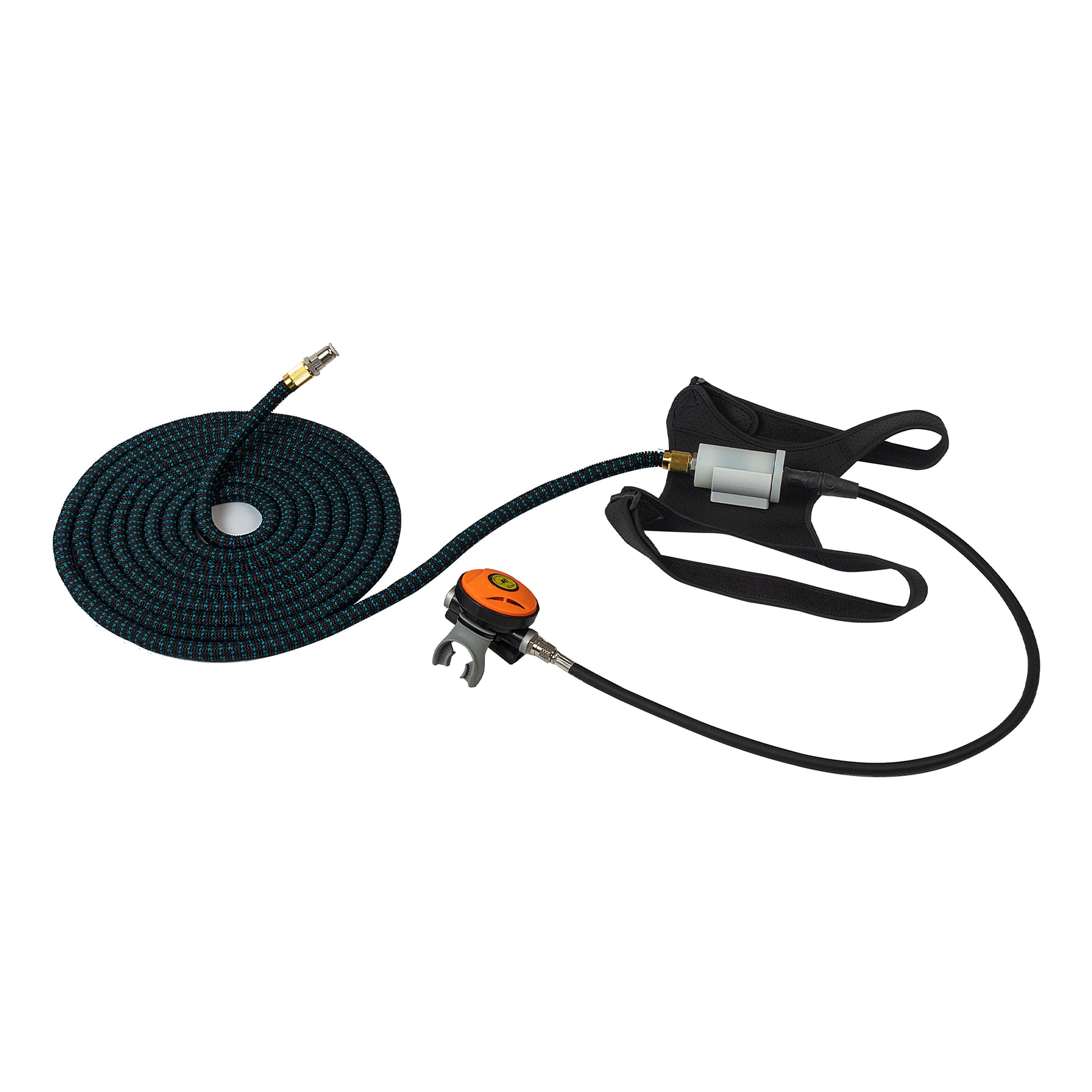 - 【Excellent Accessories】: Scuba diving apparatus for two persons, have second stage regulator octopus hookah with mouthpiece. Also includes dive flag.The double filtration system and activated carbon filtration make the breathing air cleaner, fresher and odor-free.